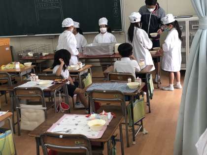 2年生の給食指導は、子どもたちがすっかりお姉さんやお兄さんになったなあと感じる場面を多く見受けます。
