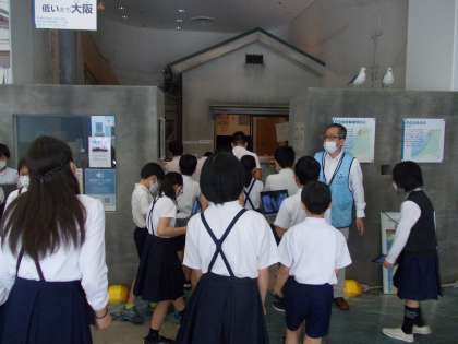 6月3日(金)に阿波座の津波。高潮ステーションに社会見学に行きました。館の担当の人の解説を聞きながら地震や津波について学習しました。