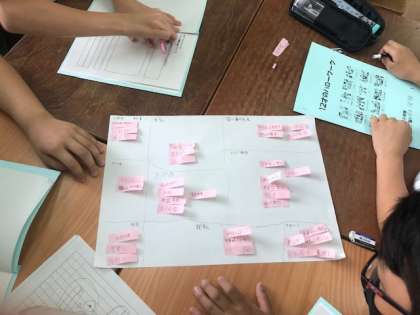 「12才のハローワーク」と題して、知っている職業を職種別に分類しました。分類が進むと付箋に記入し、職種別の一覧を完成させることができました。さすが6年生ですね。将来の夢にも想いを馳せていました。