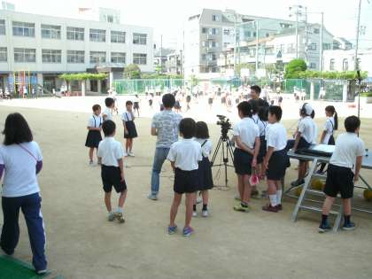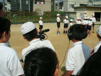 6月23日(火)5年生が、30日にNHK社会見学に行きます。その準備として、NHKの方が取材に来られました。カメラのとり方やレポートの仕方を教えていただきました。今度の社会見学で今日の取材をもとに番組を作る予定です。