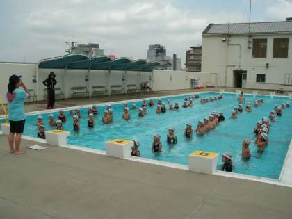 6月22日(月)から水泳指導が始まりました。プールで子どもたちの歓声をきくと、夏が来たなと感じます。写真は1年生の様子です。