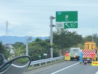 大阪市内の渋滞や伊勢自動車道の工事渋滞の影響にため、現在津インター通過したところです。到着が遅れる見込みです。ご承知おきください。