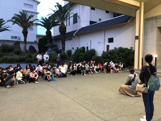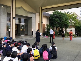 開舎式後、避難訓練を終え、これから夕食をいただきます。