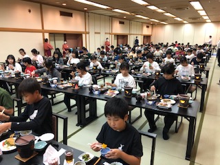 子どもたちが楽しみにしていた夕食が始まりました。黙食でしっかりいただきます。