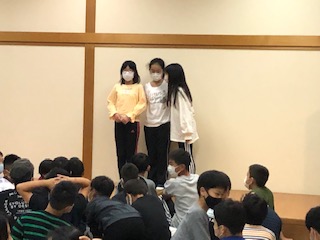 夕食の後、室内レクリエーションを楽しみました。レクリエーション担当の子どもたちが考えたゲームで盛り上がりました。