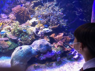 クマノミを見つめる子どもたちのやさしい瞳が印象的です。