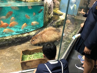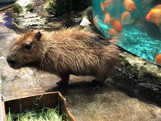 カピパラのコーナーです。子どもたちから注目され、照れているようにも見えますね。