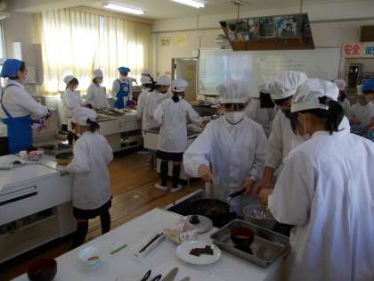 10月14日(金)の3・4時間目(1組)、5・6時間目(2組)に大阪ガスの出前調理授業がありました。味噌汁のだしの取り方や、お釜でのごはんの炊き方を学習しました。おいしくいただきました。