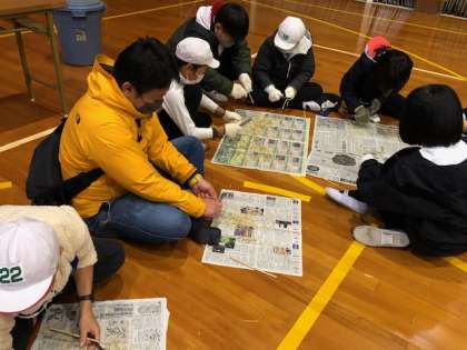 子どもたちと一緒に、先生たちも黙々と取り組んでいます。なかなか簡単にはいかないなあ〜と声が聞こえてきそうです。(笑)