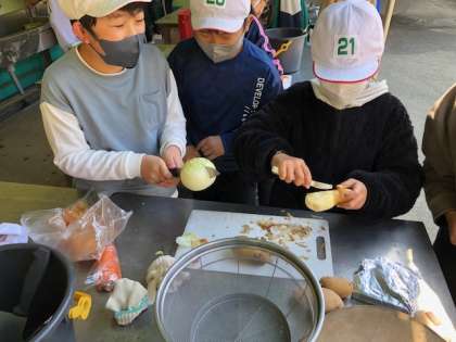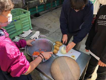 宿の方から各リーダーに、調理手順の確認がありました。その後、いよいよ調理開始です。