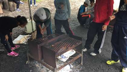 新聞紙、割り箸、まきから、「7本のマッチ」だけで火をつけます。