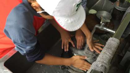 食事のあとは調理用具の洗浄です。きちんときれいにしないと合格がもらえません。