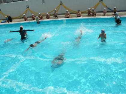 運動会が1学期に終わっている関係で、プール指導は、1週間延ばして来週の金曜日まで行います。最後の泳力テストに向けて、児童は懸命に練習しています。