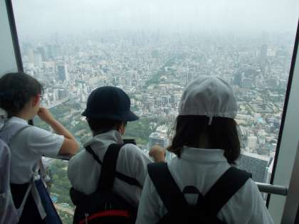 あべのハルカスの展望台で大阪の街の様子を上から見学し学習してきました。持ってきた地図とくらべては、プリントに気づいたことや見つけたものを記入していました。