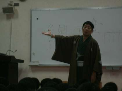 9月28日、6校時に「落語」について学びました。桂文喬師匠のお話はとても分かりやすく、面白かったです。「どのように話せば聞き手に伝わるか、そして笑いにつながるか」といったことを想像させる「落語」は、コミュニケーション能力の育成にも大変役に立つと考えています。また、大阪の伝統文化を学ぶという意味においても、本場から師匠の方に来ていただけるのは大変ありがたいことです。