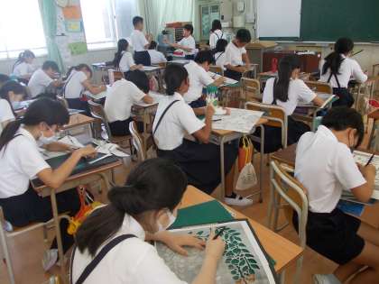 図工の時間の1コマです。一生懸命黙々と絵に向かって真剣に取り組んでいます。