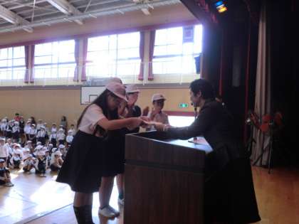 壇上に上がるリーダーの6年生が表彰状をもらう姿を低学年の児童たちが見て、あんな6年生になりたいな、と将来のイメージを膨らませてくれたらと思います。