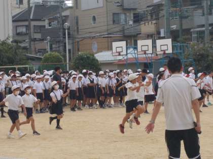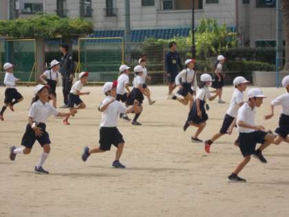10月の毎週水曜日はダッシュタイムです。20分休みは1・2・3年生、昼休みは4・5・6年生がスキップや横歩きダッシュしての走り込みなどいろいろな走り方をして体を動かしました。