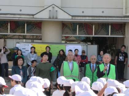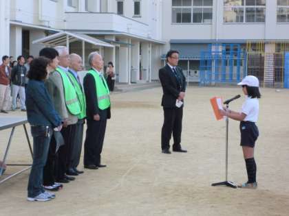 10月25日(日)登下校安全式が行われました。玉川子どもを守る会から、5名の方に来ていただきました。代表の児童が、登下校の際いつも見守っていただいていることについて感謝の気持ちを述べました。