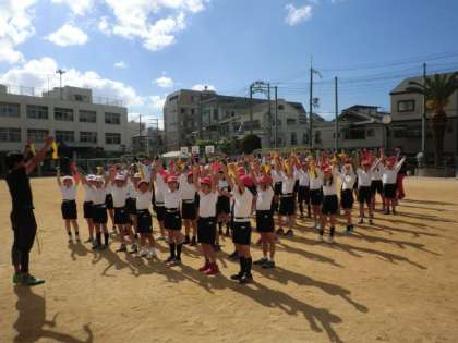 10月27日(火)一般社団法人PRAS+から、元ラグビー日本代表の冨岡耕児さんと守屋篤さんにお越しいただき、タグラグビーの特別授業を行っていただきました。ラグビーと言えば現在イギリスで行われているW杯において、日本は優勝候補の南アフリカ、サモア、アメリカを下す大活躍で世界の注目を浴びています。2019年のW杯は日本で開催されることも決定しました。現在、お二方は関西を中心に、ラグビーの普及に取り組んでおられます。