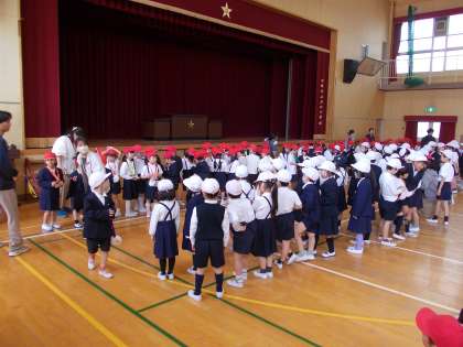 4月12日(金)1年生を迎える会がありました。クイズ学校〇×クイズで楽しんだり、2年生からあさがおの種をもらったりしました。