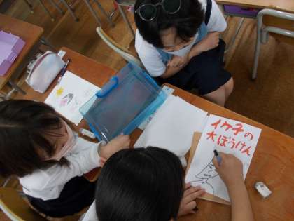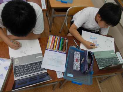 6時間目は、4・5・6年生のクラブ活動です。創作クラブでは自分たちの好きなテーマで活動に取り組んでいます。イラスト、消しゴムはんこ、キャラクター制作に取り組んでいます。