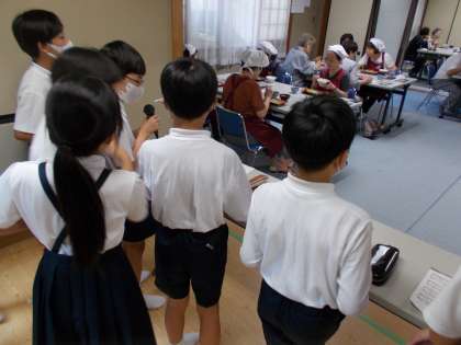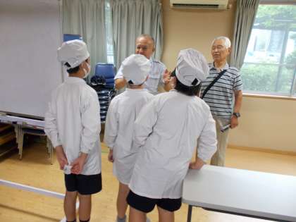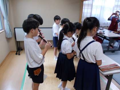 食事の配膳の後は、お年寄りの方といろいろなお話しをしました。また、食事の時には、ビンゴゲームもしました。最後にリコーダーで「もみじ」を演奏をしました。とてもきれいに演奏できていました。