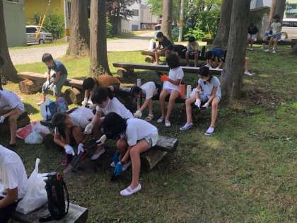焼板制作の煤落としをしています。みんな真剣な表情で進めています。