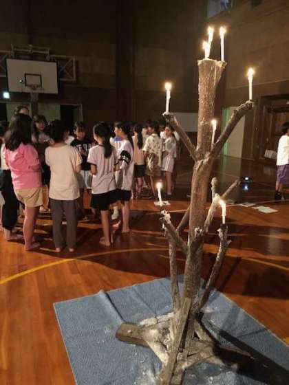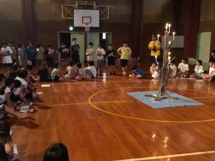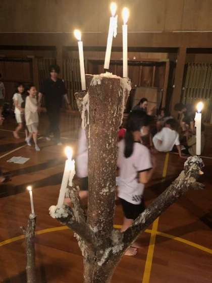 キャンプファイヤー係の子どもたちが中心となり、各班ごとにスタンツを披露しましました。