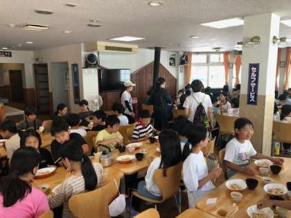 こちらでの最後の食事となる昼食が始まりました。献立は、かやくご飯とかき玉汁です。ひと口ひと口噛みしめて、いただいています。