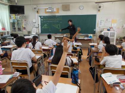5年2組の2時間目は算数を学習しました。三角形の角の大きさについて調べました。ワークシートの三角形を切って、三角形を切ったり、しきつめたりして考えました。三角形の内角の和は180度ということを学習しました。意欲的に学習に取り組んでいました。