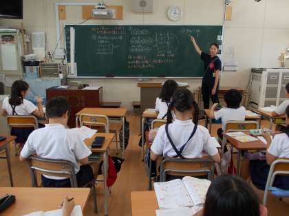 4年3組の4時間目は、算数でした。わり算の商が同じになるわり算を調べました。わり算の性質(わり算では、わられる数をわる数に同じ数をかけたり、わったりしても商は同じ)を使って大きな数のわり算を学習しました。7200÷2400は、わられる数もわる数も同じ数の100で割っても商が同じになり、計算も簡単にできることを学習しまた。正確に速く計算できていました。