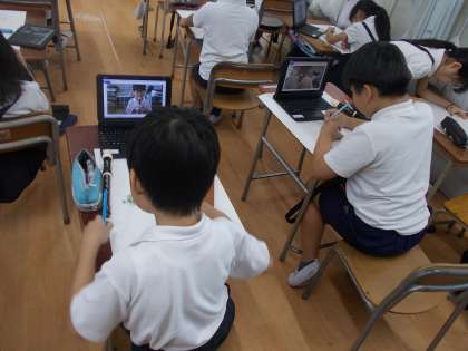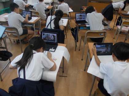 3年1組の2時間目は、図工でした。「リコーダーをふく自分」というテーマで絵を描きました。リコーダーを吹く姿をタブレットで撮影しその画像をもとに絵を描きます。今日は画像を見ながら鉛筆で下書きを描きました。リコーダーを持つ指の形を注意してみながら描きました。実際にリコーダーを持って確かめながら描いていました。