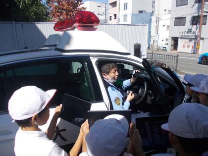 10時30分から大阪市中央卸売市場の前の交番に見学に行きました。交番の警察の方々にインタビューをしました。大変だったことや身に着けているもののことなどたくさん質問しました。警察の方々の仕事に対する思いを感じることができました。