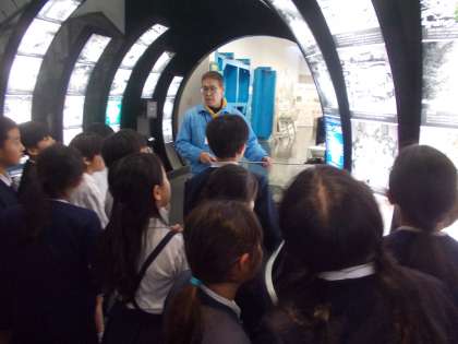 津波・高潮に関するガイダンス映像を見た後、海より低いまち大阪、繰り返し大きな高潮災害のあった歴史や高潮対策について学習しました。高潮防災施設のはたらき(鉄扉)や防災施設の役割や仕組みを学習しました。わたしたちの生命とくらしを守る水防団についても学習しました。係の人の説明を真剣に聞いていました。