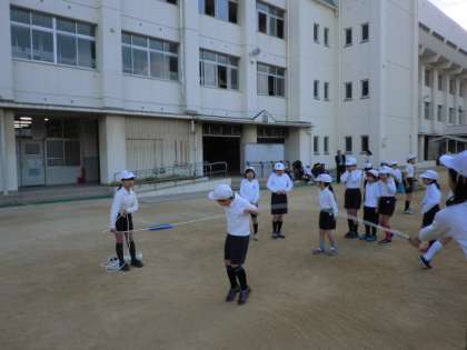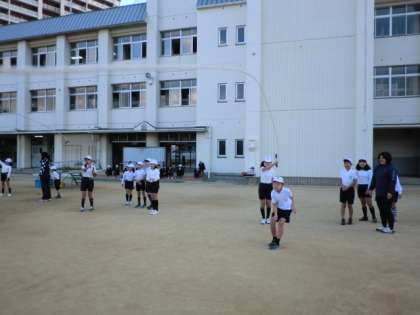 ここ数日の間にとても寒くなってきましたが、玉川小の子どもたちは朝からとても元気です。今日は全校児童が縦割り班で活動する「おはようなわとび」に取り組みました。高学年の児童たちが低学年の児童たちをサポートしながら、みんなで大縄跳びを行いました。