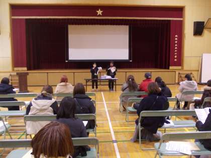 10時から講堂で令和7年度の入学説明会を行いました。学校長のあいさつ、学校紹介の後、入学にあたって(入学式・登下校・学用品・標準服等について)、学校徴収金等について、食物アレルギーについて、PTA活動について、防犯システムについての説明をしました。いきいき活動についての説明の後、PYAの保護者による、【おしゃべり質問タイム】〜今の『?』を在校生の保護者に聞いてみよう〜の座談会もありました。学校生活に対するいろいろな質問があり、PTAの保護者、教員が質問に答えました。