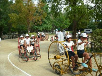 10月10日(木)本日、快晴。大山公園内にある、堺市立博物館とサイクルセンターに行きました。昔の自転車にも乗り、楽しい遠足でした。電車の中も、マナーをよく守れました。さすが、高学年です。