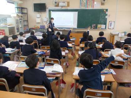 1年2組の2時間目は、算数でした。なんじなんぷんを学習しました。めあては、とけいのはりのあわせかたをかんがえようです。3じ24ぷんや8じ35ふんなどの時刻を正しく読んだり、針を合わせたりしました。デジタル教科書の「とけい」を操作して考えました。積極的に発言したり、説明したりしました。
