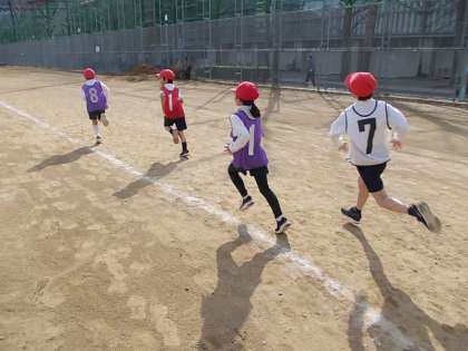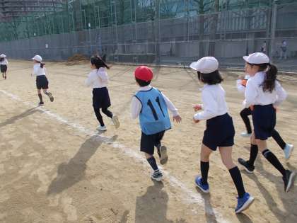 9時から11時まで下福島グランドで玉川パークランがありました。1・2年生は、4周1600m、3・4年生は、5周2000m、5・6年生は、6周2400m走りました。