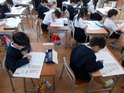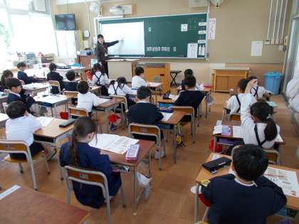 1年1組の2時間目は、算数でした。6〜10までの数を学習しました。数字の書き順を学習した後、わくわくさんすうすたあとぶっくに書く練習をしました。イラストの絵の数だけ色をぬったり、かぞえて数字を書いたりしました。丁寧に書けていました。