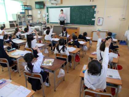 1年生1・2組の1時間目は、国語でした。ひらがなの「へ」「と」を学習しました。「へ」「と」の思いつく言葉、へちま・へび、とり・とまと・とけいなどを発表しました。たのしいおけいこひらがなすうじのワークブックに書いて練習しました。丁寧に書けていました。