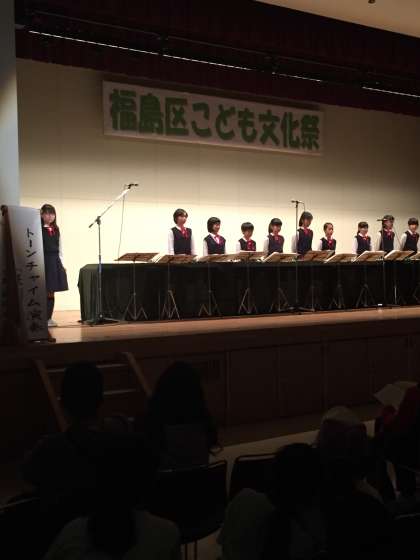 2月14日(日)に開催された「福島区こども文化祭」において、本校の児童がトーンチャイムの演奏を披露しました。子どもたちはこの日のために放課後に残ってたくさん練習しました。当日は緊張した面持も見られましたが、立派に演奏してくれました。