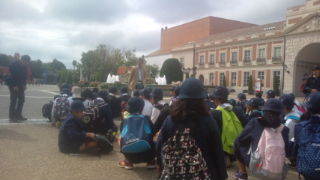 志摩スペイン村に着きました。天候は曇りです。日がさすこともあり、楽しめそうです。車酔いもなくみんな元気です。