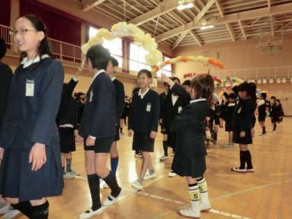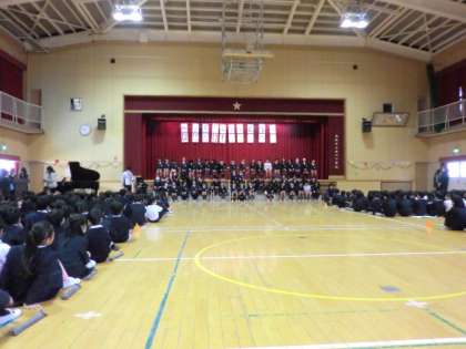 1年生から5年生までがそれぞれ今日の日のために練習してきた歌、出し物、演奏を、6年生に向けて送りました。それを受けて6年生からもお返しがありました。