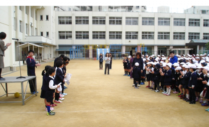本日朝の集会にて、先日行われた玉川パークランの表彰式が行われました。