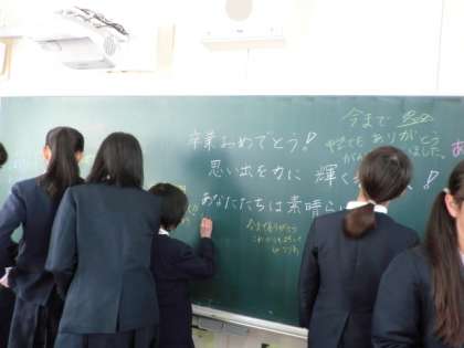 担任の先生が書いたメッセージの周りに、子どもたちも思い思いの気持ちを書いていきました。