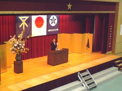 入場がひと段落し、国歌、市歌を斉唱した後には校長先生よりお祝いのことばです。