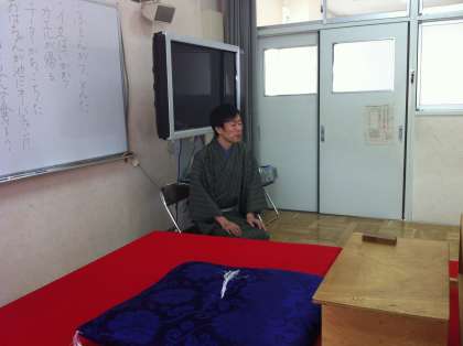一人で顔の向きを変えて演じ分ける。最後に必ず「オチ(サゲ)」があるというなどたくさんの落語の技を教えてもらいました。
