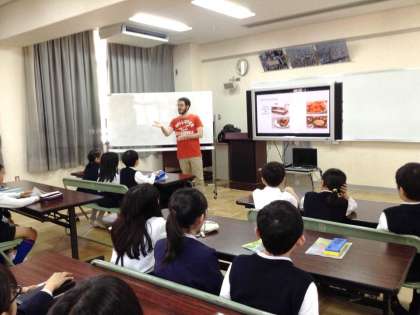 今日から、C−NETによる外国語活動が始まりました。本校は、5、6年生が「Hi,friends!」3、4年生が「Hello,kids!」という英語教材を中心とした外国語活動を行っています。本年度はオースティン先生が本校の担当となりました。